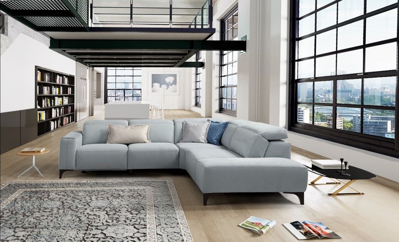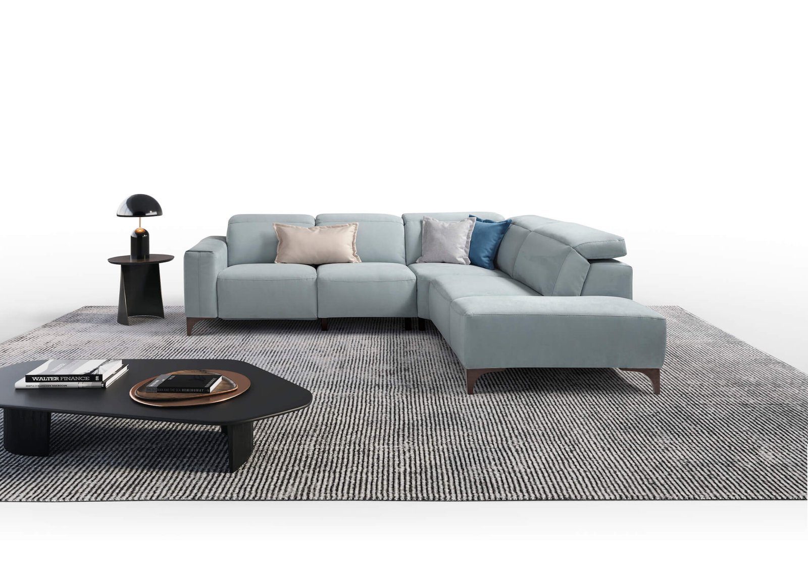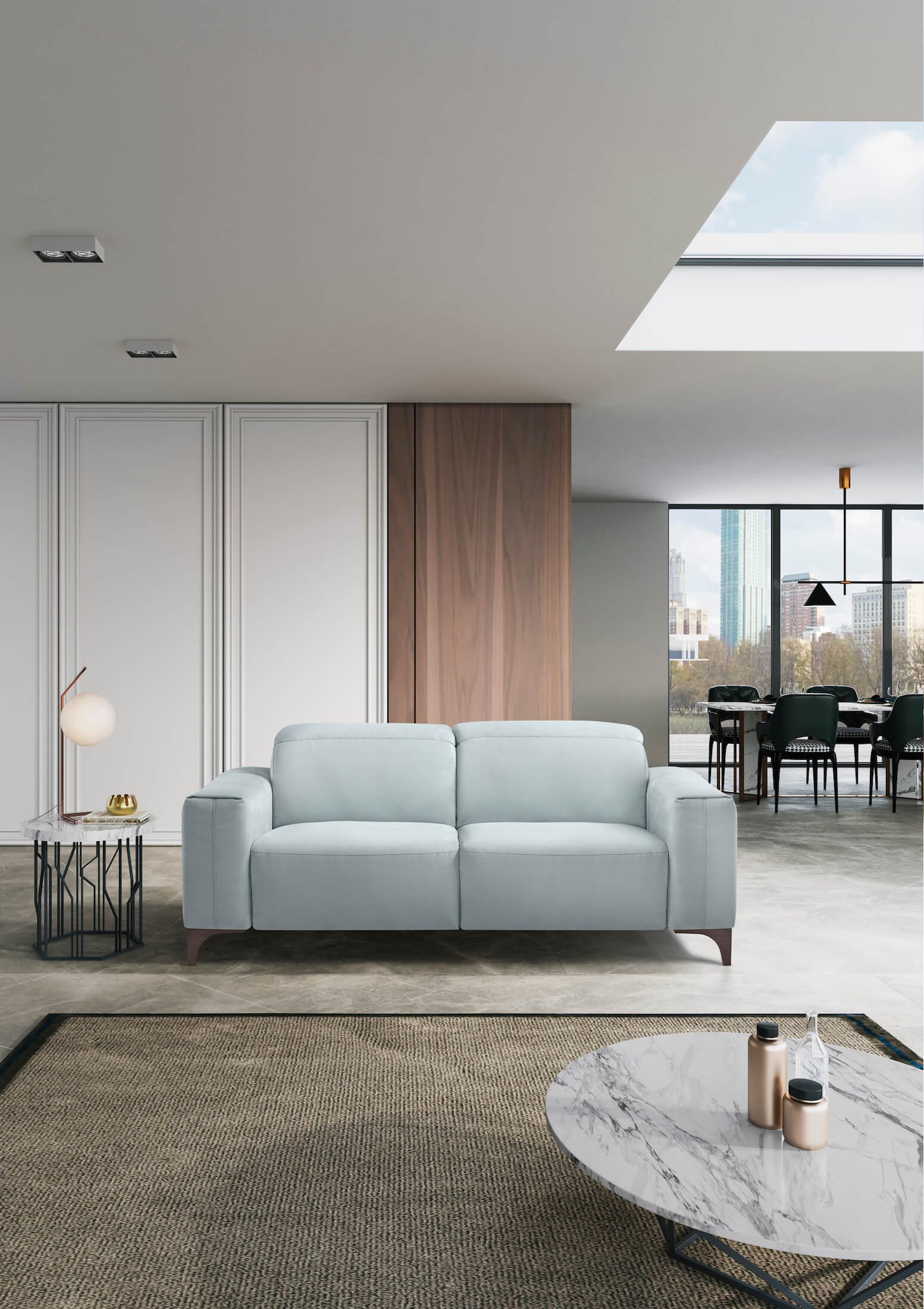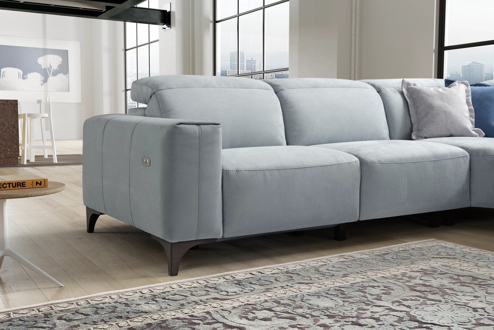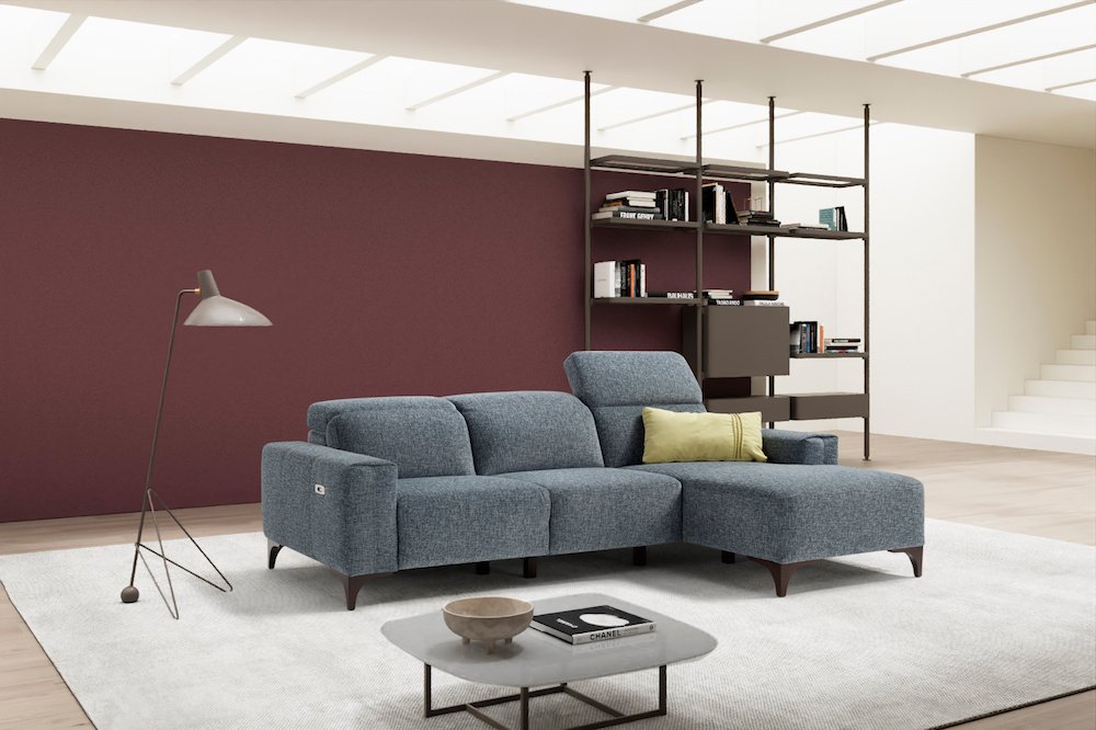 Nella versione relax il modello dispone di meccanismo elettrico combinato con movimento schienale-poggiapiedi, con comando posizionato sul bracciolo laterale.