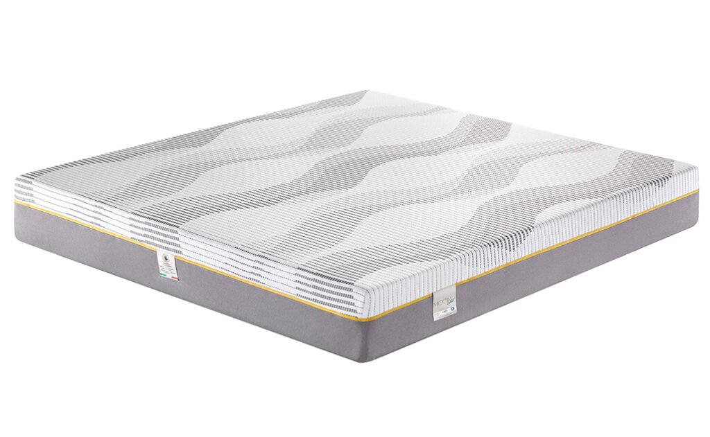 La superficie è rivestita in tessuto 3D Seta una combinazione perfetta che assicura freschezza, traspirabilità e controllo dell’umidità. La struttura interna è composta da una stratificazione bilanciata di materiali ad alte prestazioni: Memory Foam Piramidale nel topper ed il Polilattex con diverse performance che aumenta la capacità di adattamento e migliora il comfort complessivo.