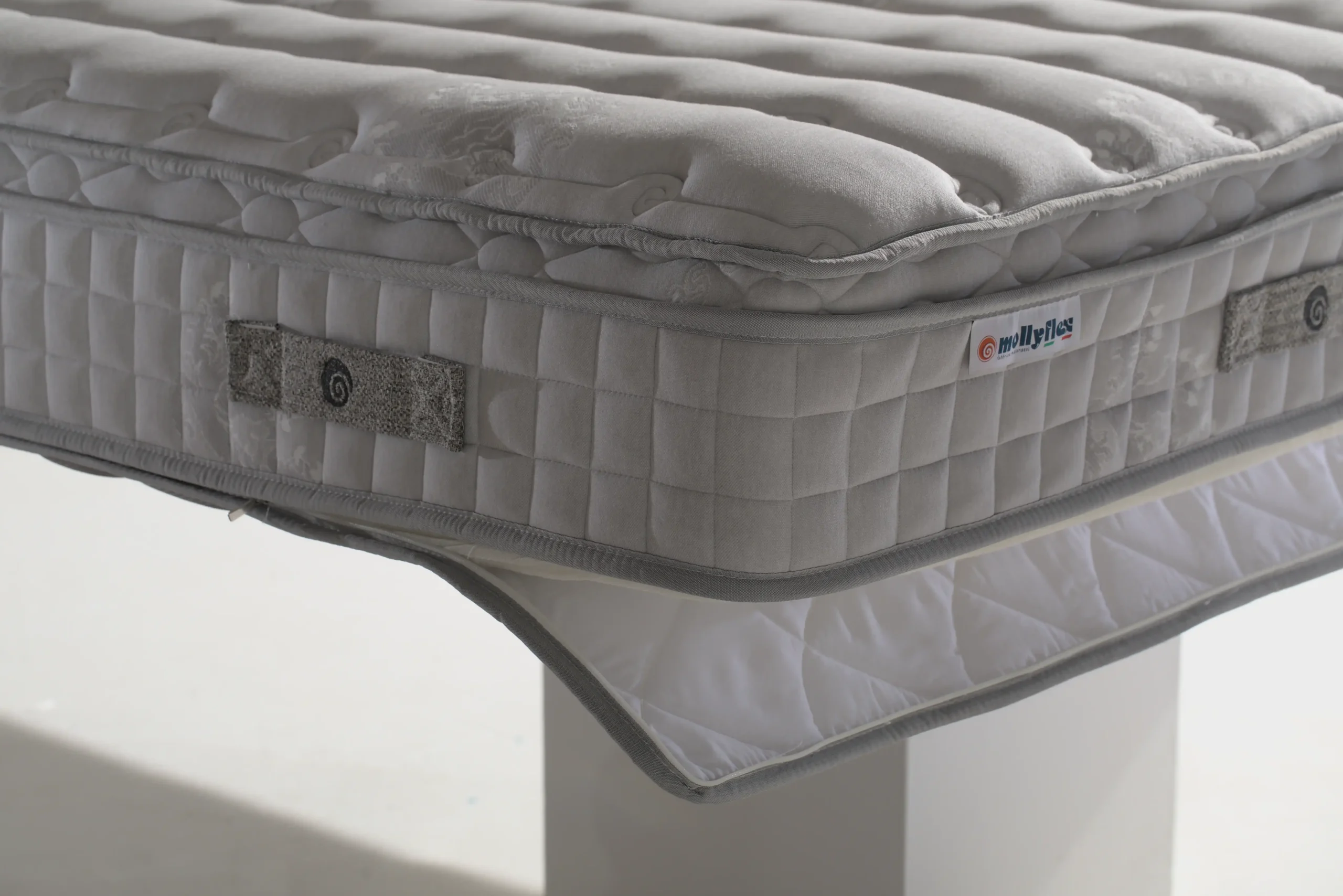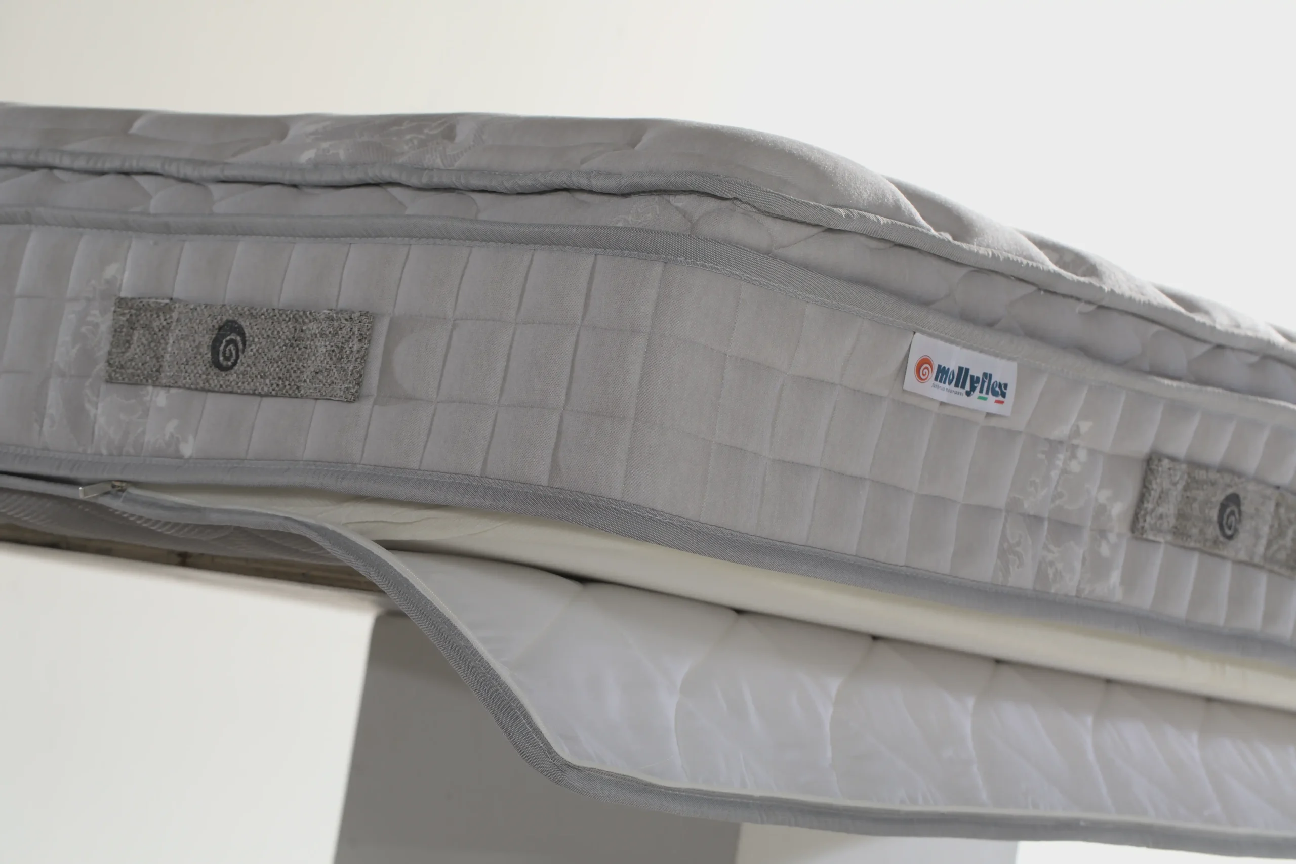 La fascia laterale a tripo bordo con 8 maniglie facilitano la movimentazione del materasso. La possibilità di sfoderare e lavare a secco la parte superiore, garantisce la massima igiene.