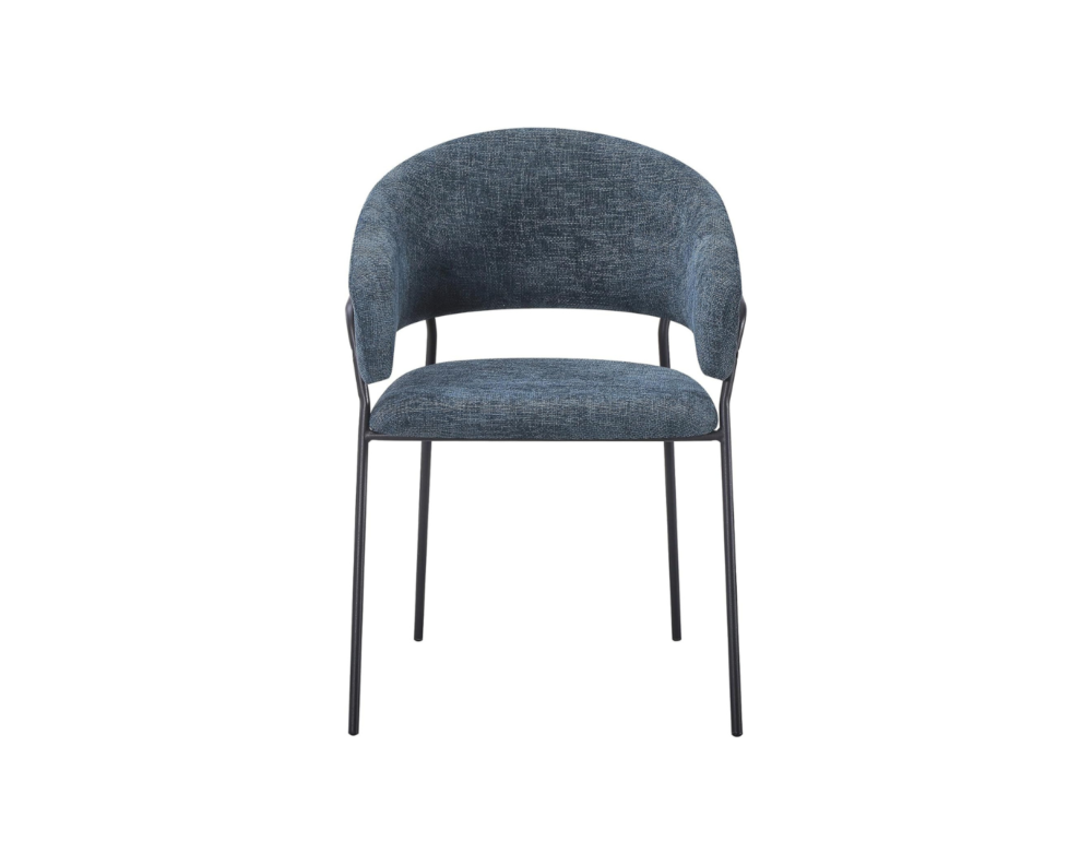 Poltrona da pranzo dalle linee sofisticate, Il sedile e lo schienale sono rivestiti in un tessuto.
