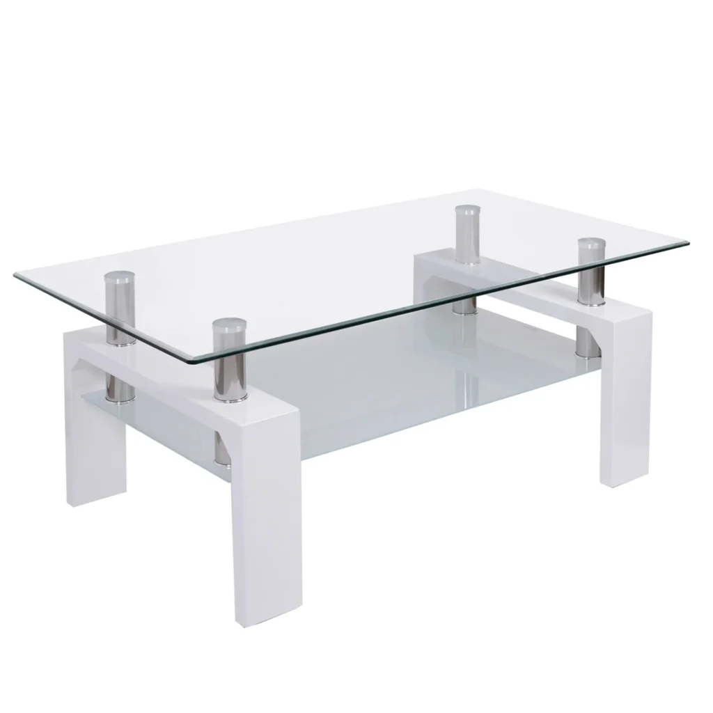 Tavolino basso con piano rettangolare, perfetto come coffee table centrale.